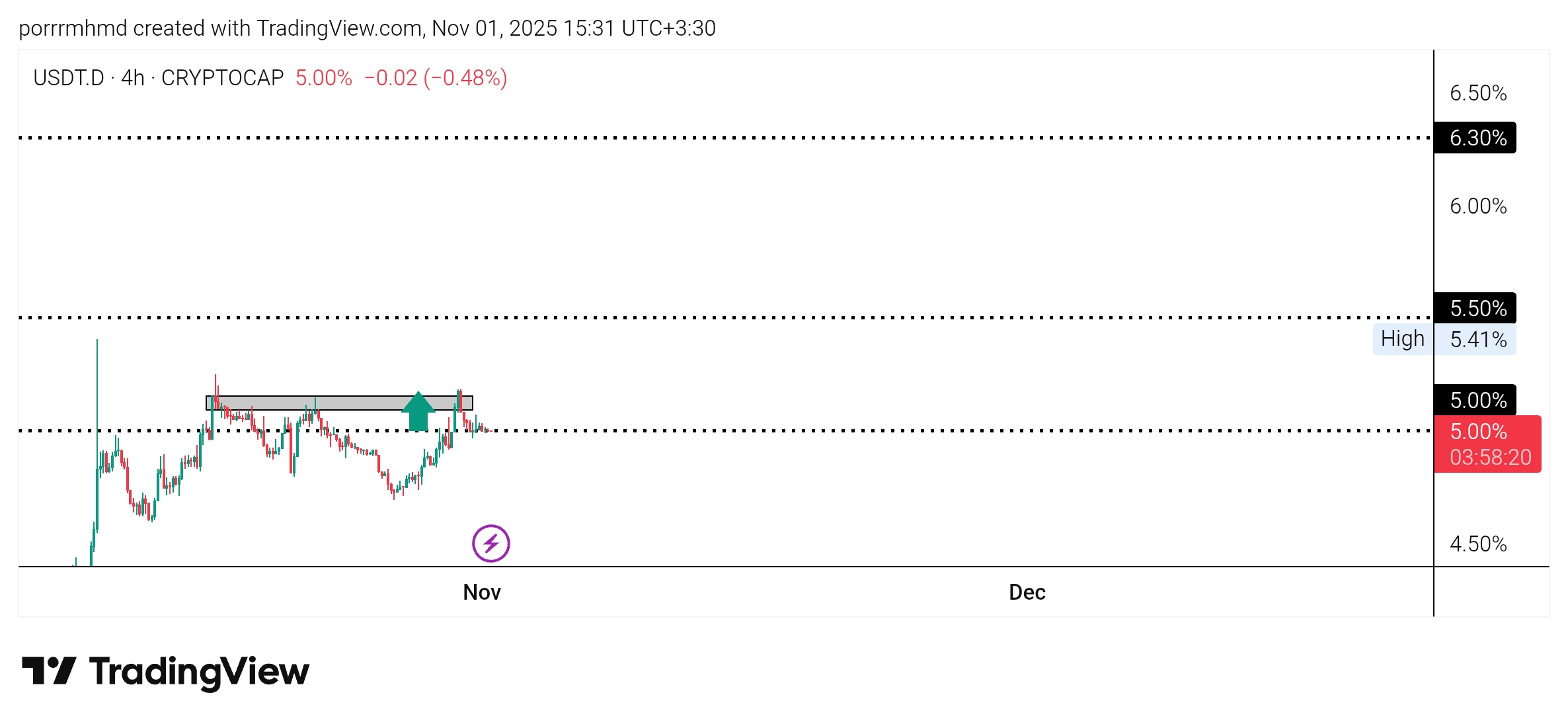 💹 دامیننس تتر در محدودهی ۵٪ قرار دارد و نشانههایی از رشد مجدد آن دیده میشود.